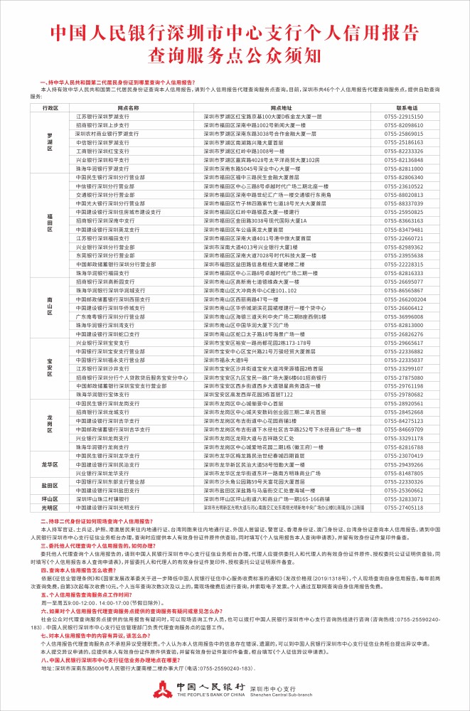 11.中国人民银行深圳市中心支行个人信用报告查询服务点公众须知