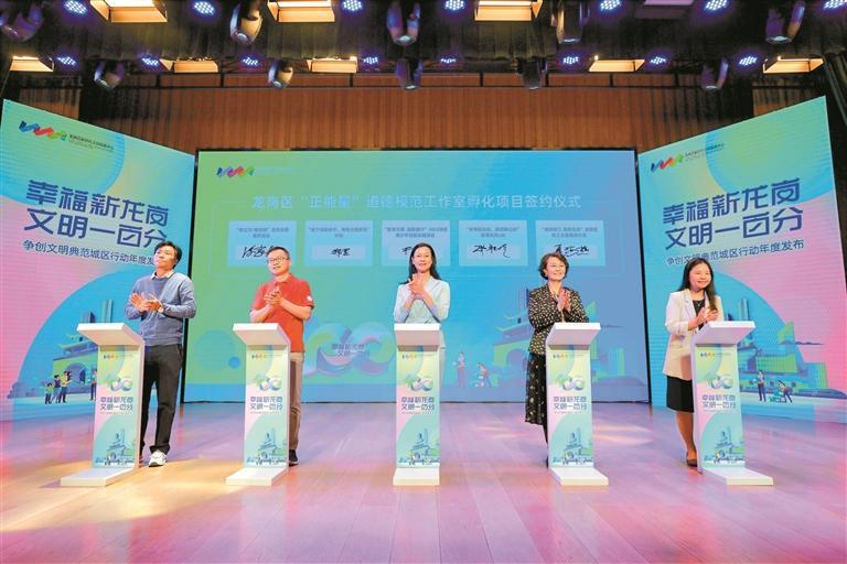 本次活动还启动了“龙岗区新时代文明实践中心共建平台”,举行“正能量”道德模范工作室新孵化项目签约仪式以及发布龙岗区2023年文明实践年度重点活动,以鲜明的品牌项目持续擦亮龙岗城区新IP,以文明实践品牌带动龙岗区文化的建设和传播。