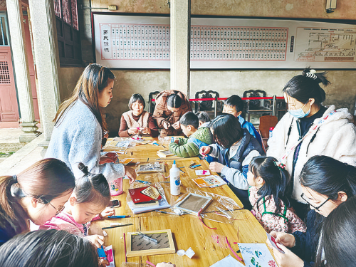 当日的活动在粤绣(珠绣)非遗体验课程中开场。在非遗传承人的悉心指导下,学员们将一颗颗珠子在针线间排列组合,专注地绣制出珠绣作品。非遗体验课麦秆画课上,学员们在老师的指导下通过“剪、切、拼、贴”等一道道工序,将麦秆制成精美的图案,每一个步骤都饱含着大家对传统文化的热爱。