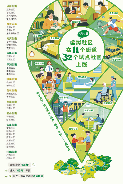 3月31日,龙岗区召开“虚拟社区”上线媒体通气会,11大服务场景在11个街道32个社区成功上线,标志着“虚拟社区”建设取得阶段性成果。