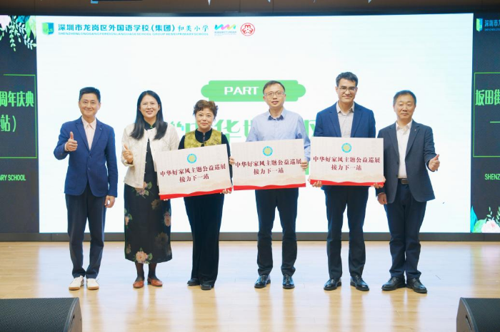 在“中华好家风”主题展巡展接力仪式上,雪象小学、龙外集团云和学校、花城小学的代表依次上台,郑重地从余秋婵、方伟坤及龙外集团和美小学专职副书记,执行校长蒋国军手中接过象征传承的牌匾,正式成为巡展下一站的承办单位。活动尾声,与会人员一同移步美好生活馆,参观了“中华好家风”主题公益巡展,在一幅幅作品和故事中,沉浸式感受优良家风的熏陶。