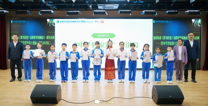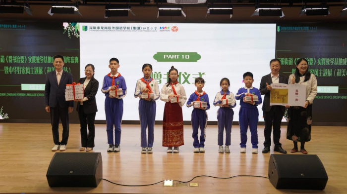 活动中,丰富多彩的文艺节目深刻地诠释了家风文化的内涵。优雅的舞蹈《咏梅》、深情的朗诵《诗意中国》、经典的黄梅戏选段《女驸马》以及感人至深的主题演讲《一双筷子传家训》,从不同角度展现了中华美德与家风传承的力量。活动现场举行了富有意义的聘书颁发仪式,27位和美小学生获颁坂田街道“中华好家风”宣讲员聘书,成为优秀家风文化的传播者与实践者。与会人员还共同观看了以生动的AI影像语言演绎的《群书治要》经典视频故事,领略古圣先贤的孝心和教子之道。在温馨的赠书仪式上,坂田街道向和美小学赠送了100本《中华好家风》书籍,这份承载着传统文化精髓的精神礼物,将进一步助力书香校园与家风建设深度融合,为培育时代新人注入丰厚文化滋养。