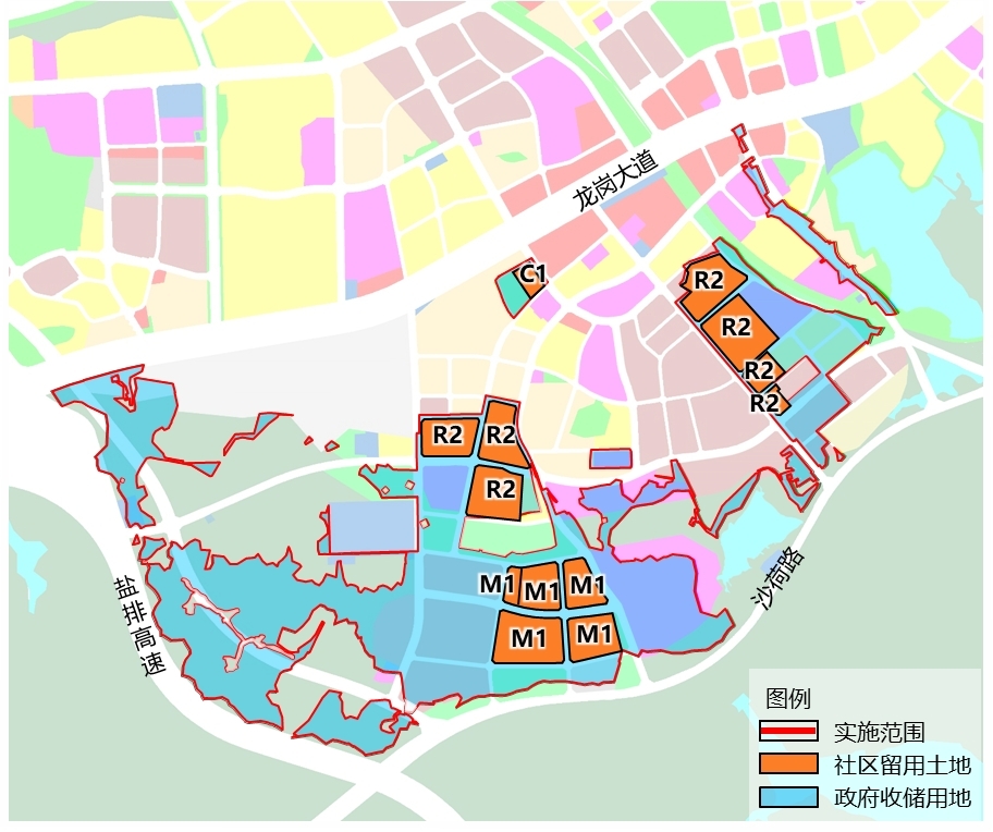 本项目位于横岗街道六约、华乐、横岗、松柏社区,土地整备利益统筹实施范围面积约165.71公顷,项目通过“货币补偿和留用土地”的方式实施土地整备,土地整备资金合计约40.74亿元,按照项目实施监管协议的要求拨付给项目搬迁主体;留用土地13宗,总用地面积约32.31公顷,选址详见附件。留用土地用地性质及容积率等最终以深圳市城市规划委员会法定图则委员会审批为准。