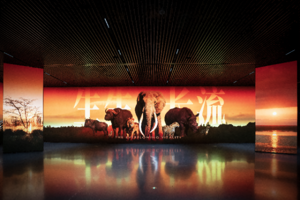移步二楼灵动空间,嘉宾们观看了创作团队远赴非洲肯尼亚、坦桑尼亚实地拍摄的数字艺术精品《生生长流》。