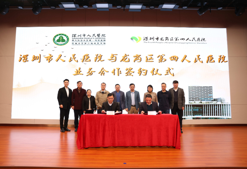 1月23日上午,深圳市人民医院与深圳市龙岗区第四人民医院(以下简称龙岗区四院)举行业务合作签约仪式。此次签约合作不仅是两家医院间的通力合作,更是推动区域医疗资源整合、完善分级诊疗体系的重要实践。