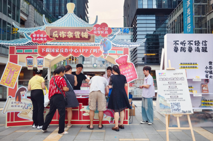 本次活动将把“传统”与“潮流”相结合,现场除了反诈知识问答外,还设置了反诈视力表、投壶小游戏和反诈档案馆,多角度、多形式、多维度普及防骗、反诈等知识,市民通过参与互动可领取水杯、纸巾盒、帆布袋、防蚊贴、肥皂等“反诈大礼包”。创新的形式和丰富的内容,受到了广大市民的热烈欢迎和积极参与。“这个‘杂货铺’开设花了心思,很有意义……”市民陈小姐表示。答题正确就能领取一份小礼品,回答错误也不用担心,“摊主们”当场就能给您送上正确解析。市民在轻松愉快的氛围中,能够更加深入地了解反诈知识,提高自我保护能力。