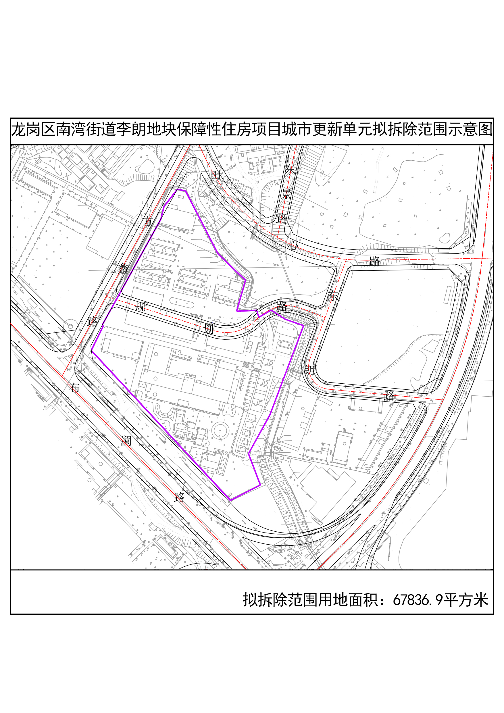 2.龙岗区南湾街道李朗地块保障性住房项目城市更新单元计划调整拟拆除范围示意图