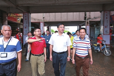 戴斌(中)率队检查深圳市大广农贸综合批发市场。