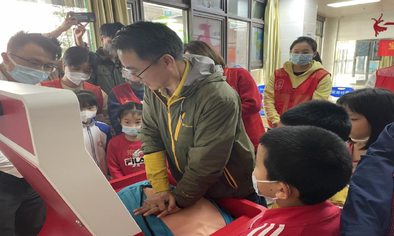 培训现场,专业技术人员通过现场理论授课和实操演练的方式,重点对心肺复苏和AED设备的使用等急救技能进行培训,详细地讲解了心肺复苏术、AED操作的动作要领和注意事项,讲授双手交握方式、跪地位置、按压频率等相关内容。“AED配备使用人员应对突发心肺骤停者的急救能力,现场对青少年志愿者进行了一对一指导,确保每名参训人员都熟练掌握相关急救知识和设备的正确使用方法。”社区工作人员说道。