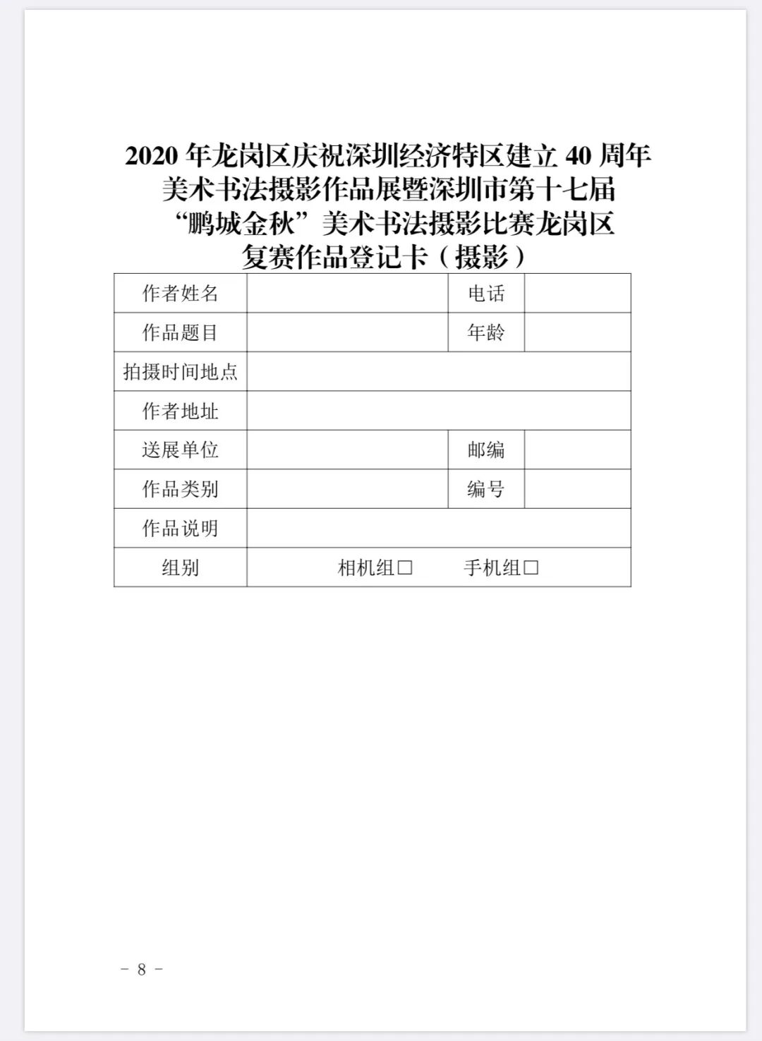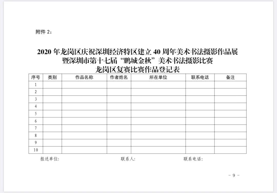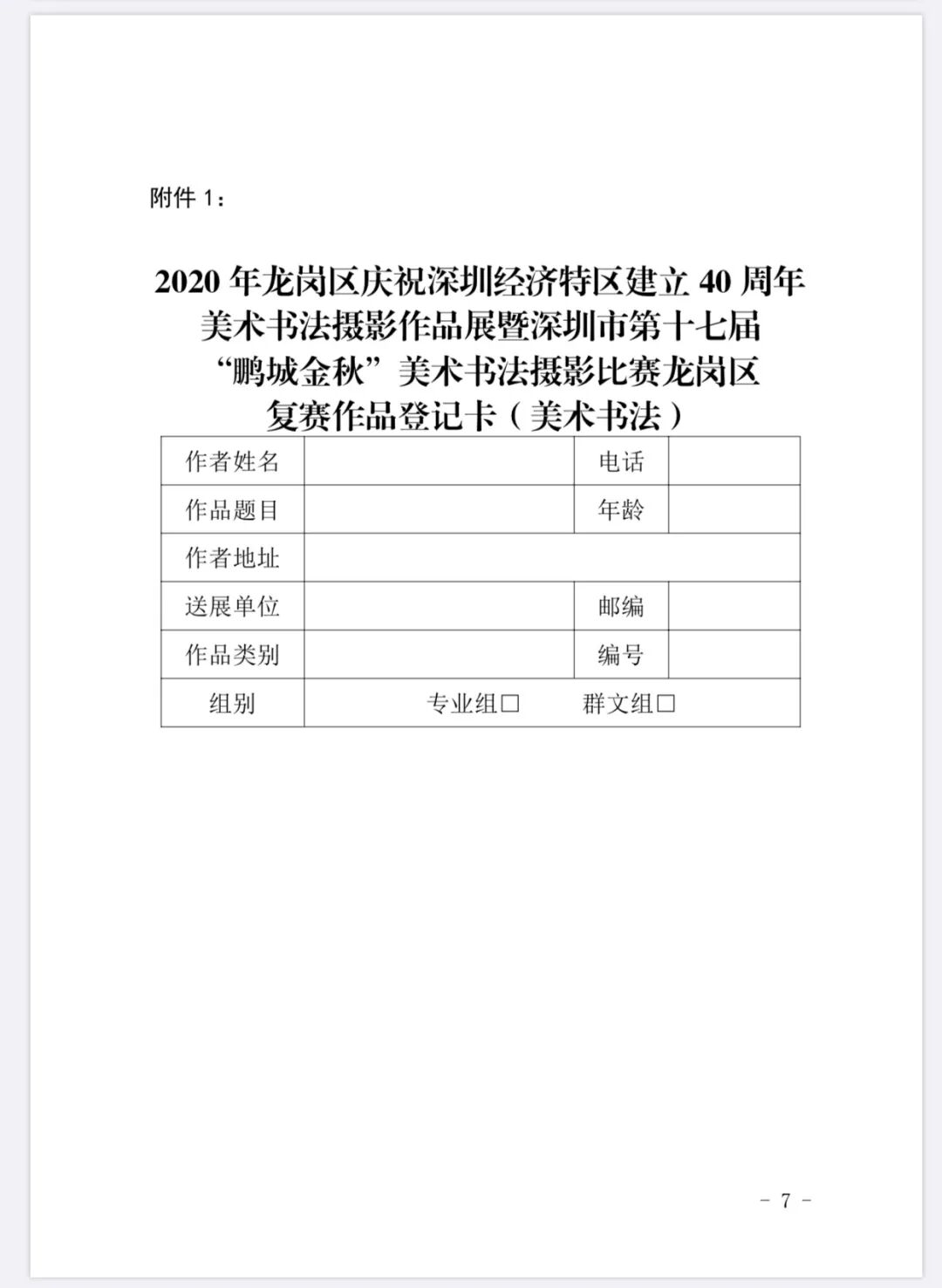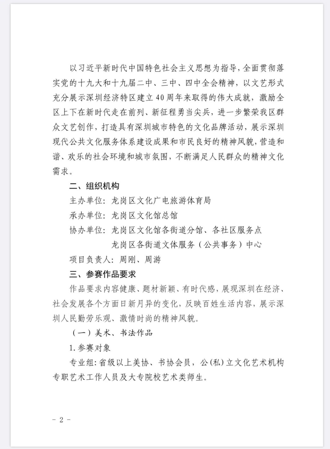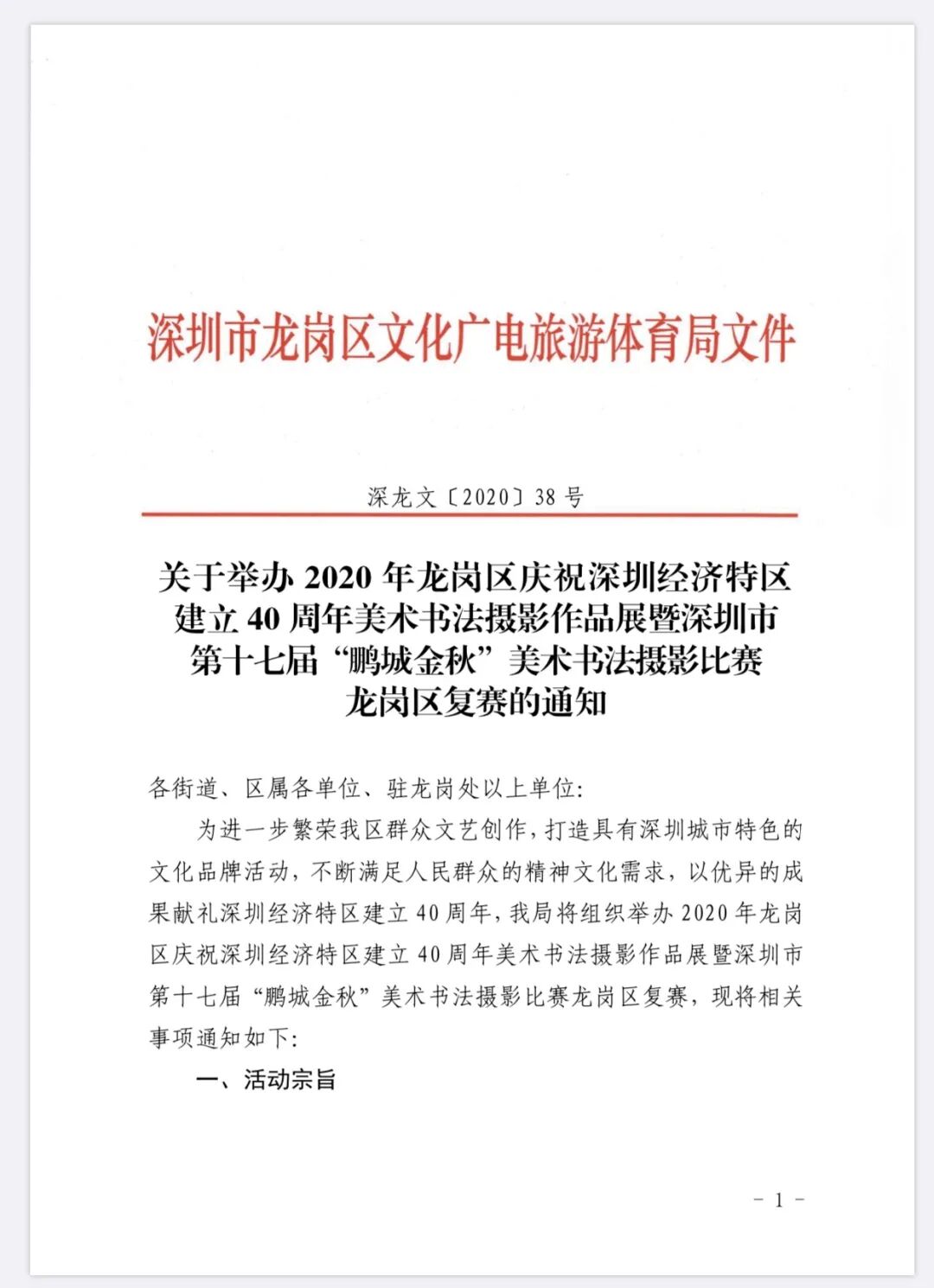 关于举办 2020 年龙岗区庆祝深圳经济特区 建立 40 周年美术书法摄影作品展暨深圳市第十七届“鹏城金秋”美术书法摄影比赛龙岗区复赛的通知